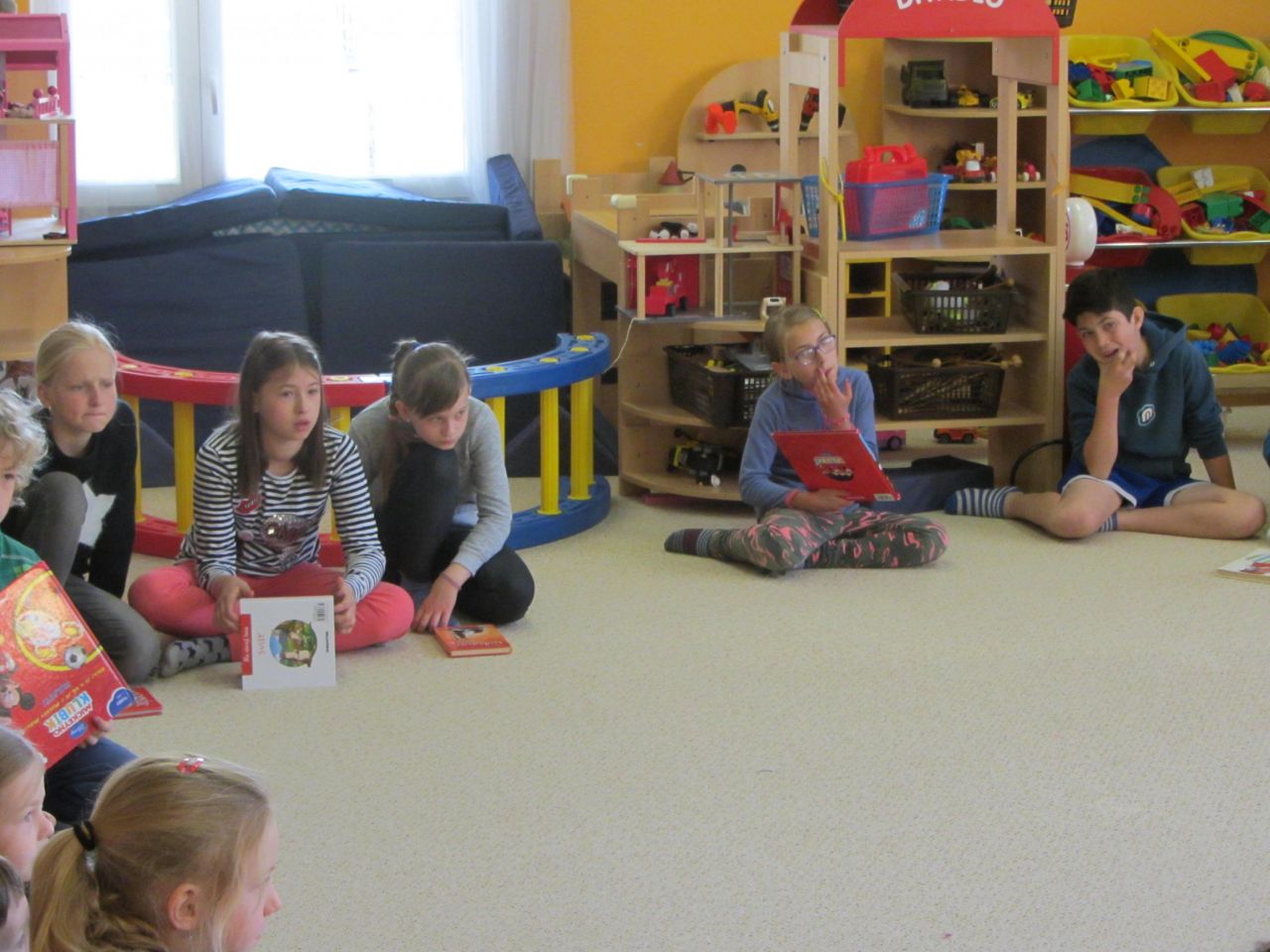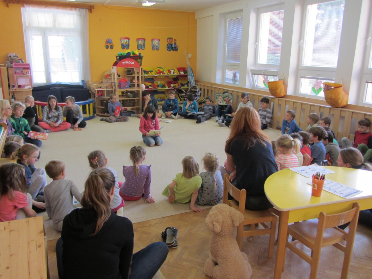 V rámci spolupráce k nám do školky zavítali děti ze školy - popovídat nám o své oblíbené knížce.
