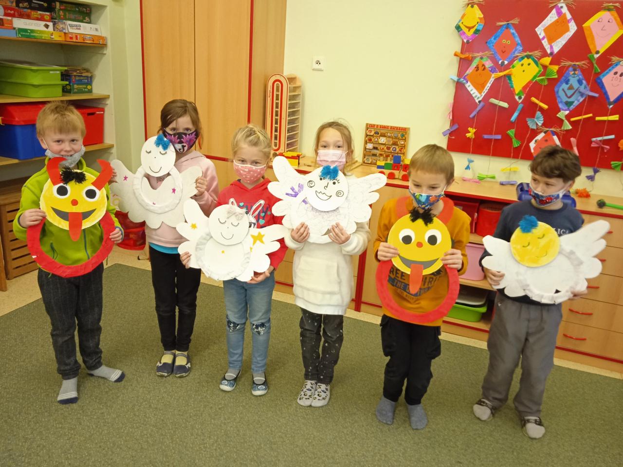 A v týdnu, kdy byl Mikuláš, jsme se obě oddělení pustily do práce. Začali jsme pracovat na projektu Vánoce. Děti vytváří výrobky na výzdobu školy, na nástěnky, ale také pro potěšení domů. Děti pracovaly s velkým nadšením, což nás s paní vychovatelkou Renčou velmi potěšilo. Také jsme nazdobili ve škole stromeček výrobky, které děti vytvořili.